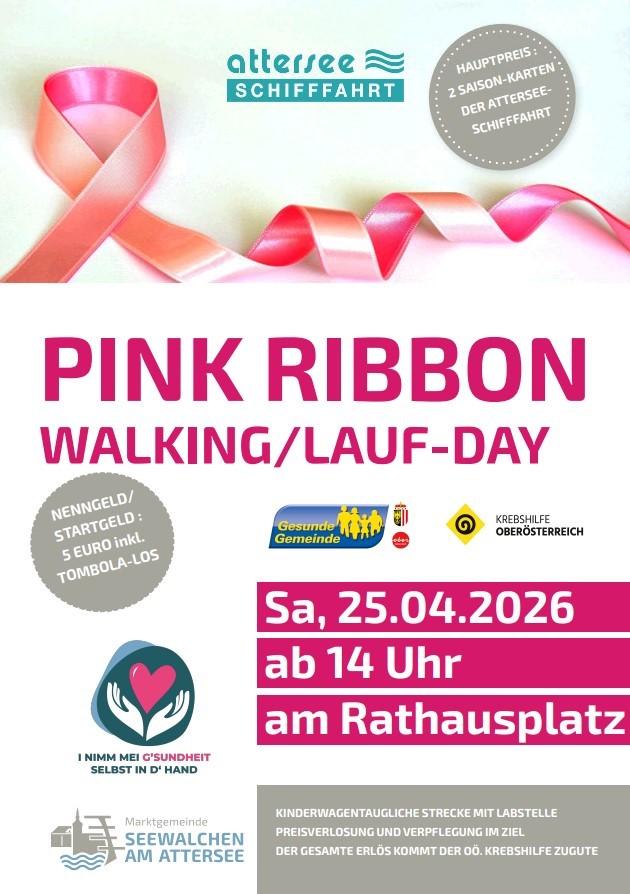 In wunderschöner Kulisse Gutes tun - sei dabei beim Pink Ribbon Walking/ Lauf - Day in Seewalchen am Attersee. Am 25.04.2026 um 14:00 am Rathausplatz, wir freuen uns auf dich.