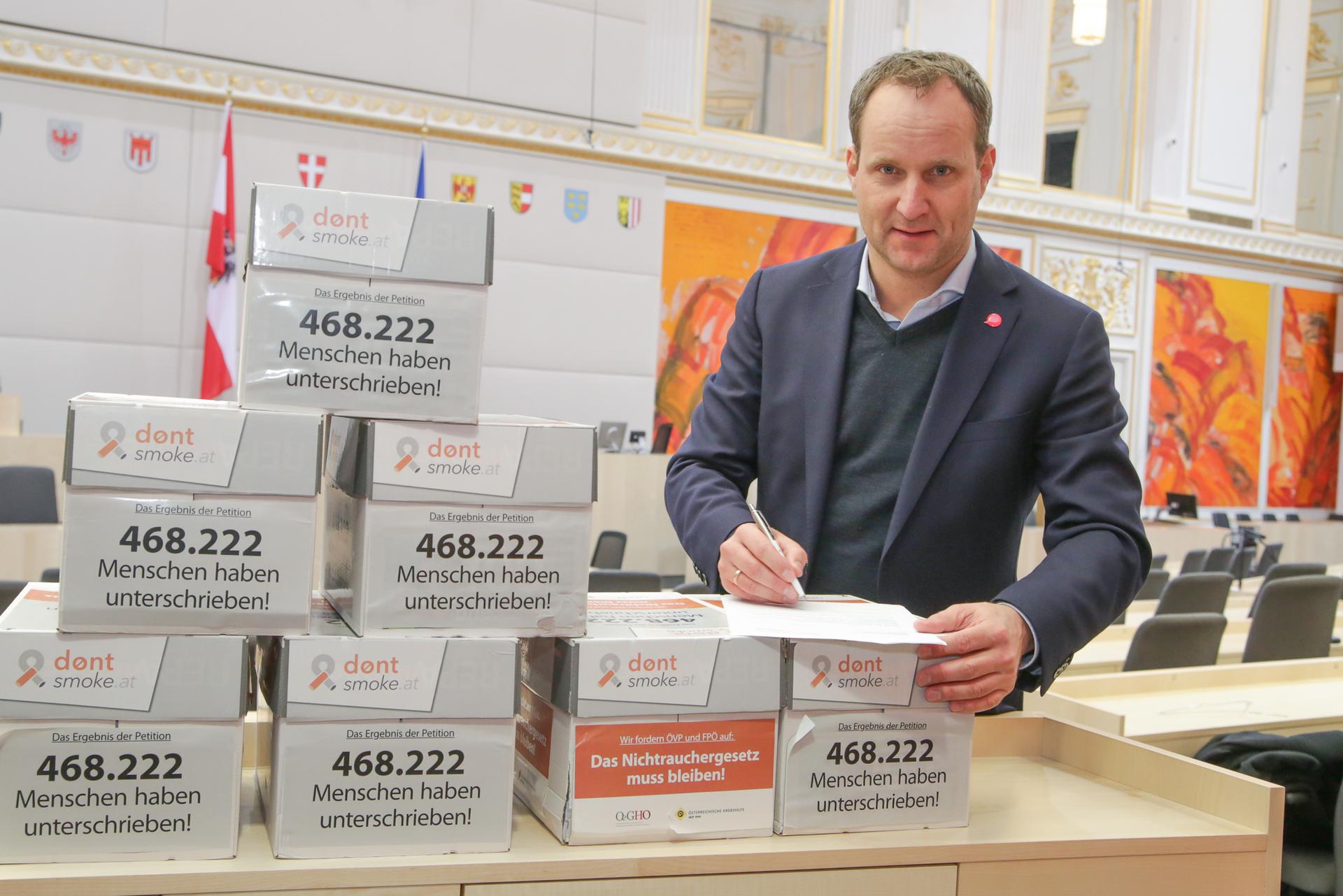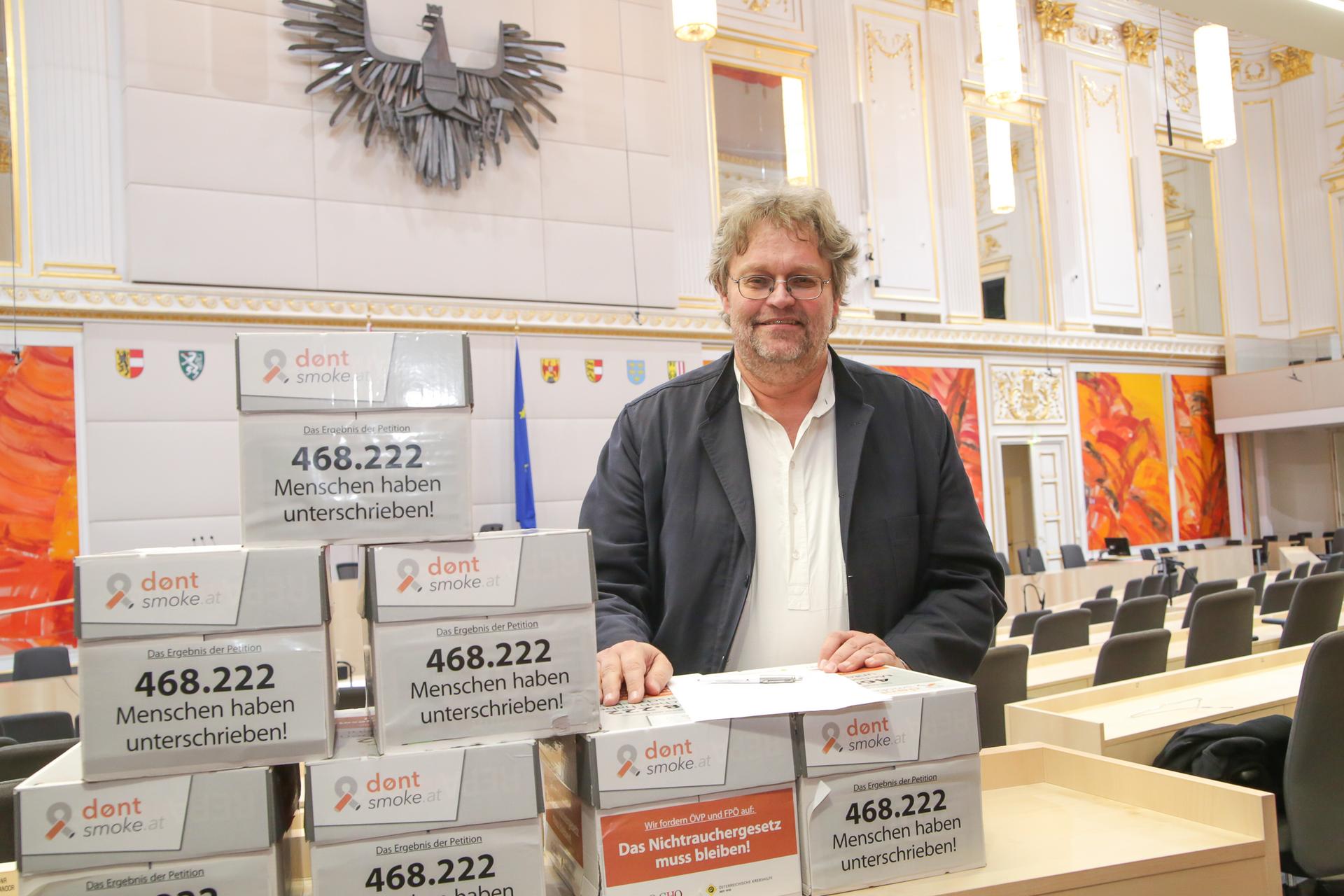 Die Österreichische Krebshilfe startete gemeinsam mit der OeGHO (Österreichische Gesellschaft für Hämatologie & Medizinische Onkologie) am 11. Dezember 2017 die Online-Petition DON’T SMOKE für die Beibehaltung des 2015 beschlossenen Nichtraucherschutzgesetzes. Binnen 24 Stunden waren dafür die ersten 100.000 Stimmen gesammelt – eine enorme Beteiligung, die es bis dahin noch bei keiner Petition gegeben hat.